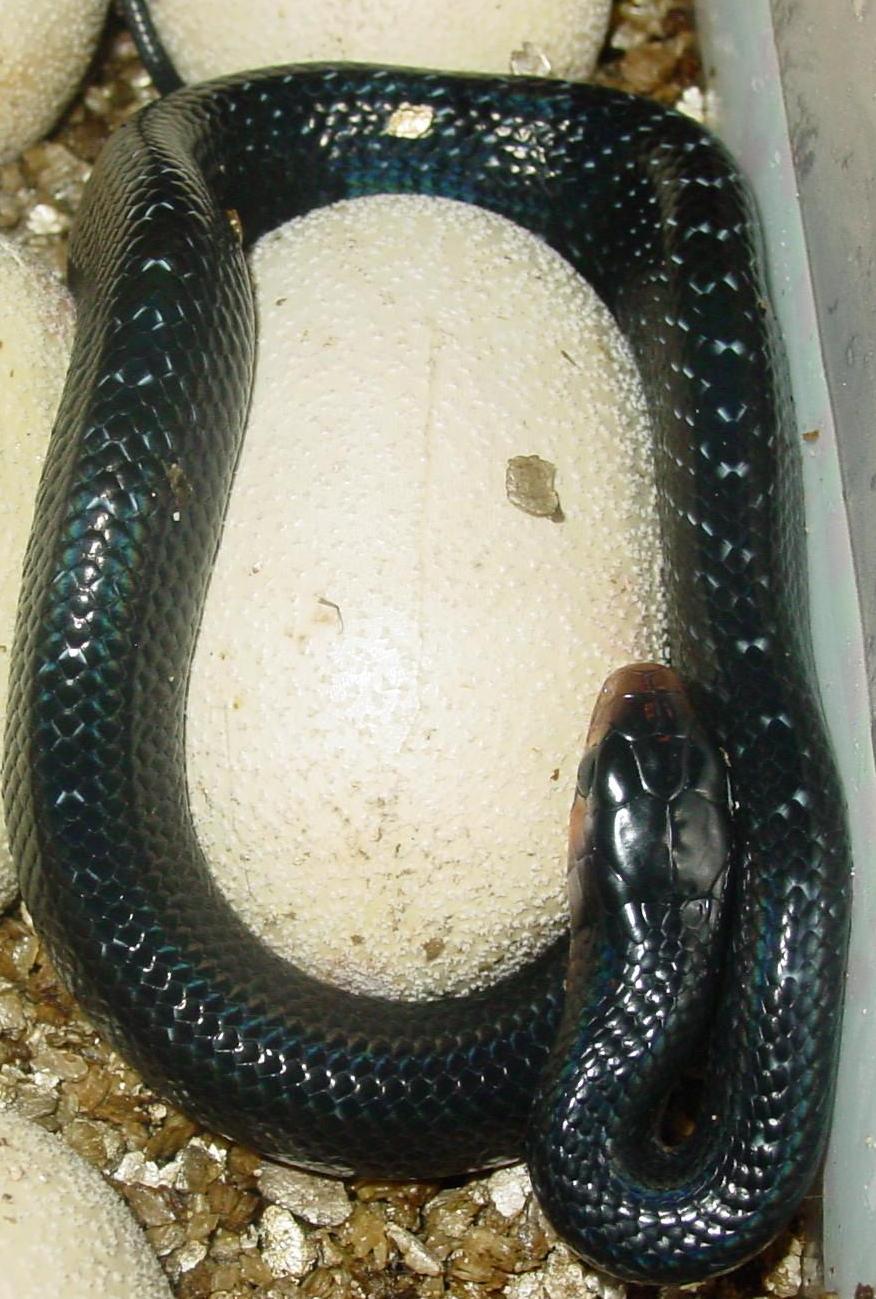 I still need to get my hands on a digital camera to take a picture of my little snake. But here is a picture of her hatching from her egg (or just after the fact). She is a little bigger now and the red color on her mouth and nose is mostly gone (except for a little dot on the tip of her mouth). She looks more like that really good indigo picture posted below. And yes…by this weekend’s end (that is to say…today) I shall name her!