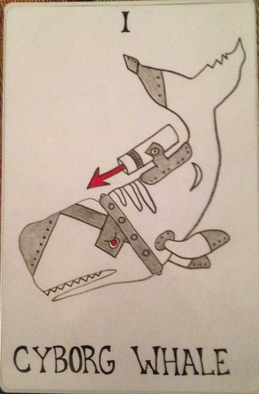 See the hulking brute — half machine, half marine mammal, sent back in time to unleash leviathan carnage. This card suggests dual natures, diametrically opposed forces, the yin and the yang. This is the duplicitous edge of life and death that we all dance upon. Some days are cold, calculating, and pragmatic…and some days are eleven tons of rotting whale blubber.